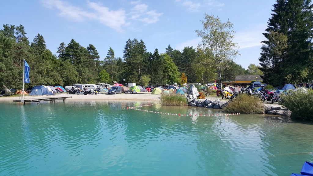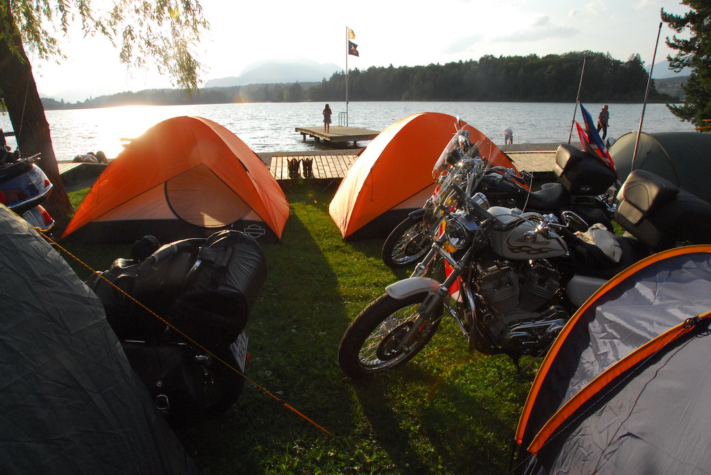 Unser Campingplatz liegt mitten im Geschehen. Bis zum Harley Village sind es 900 m, bis zum Arneitz Village 100 m!